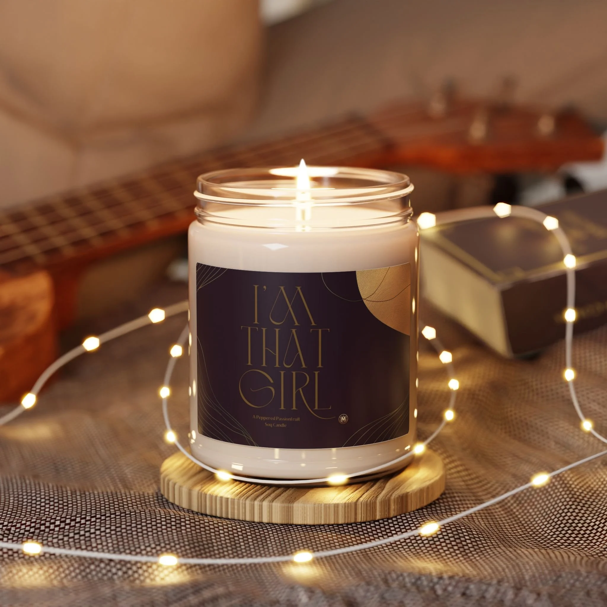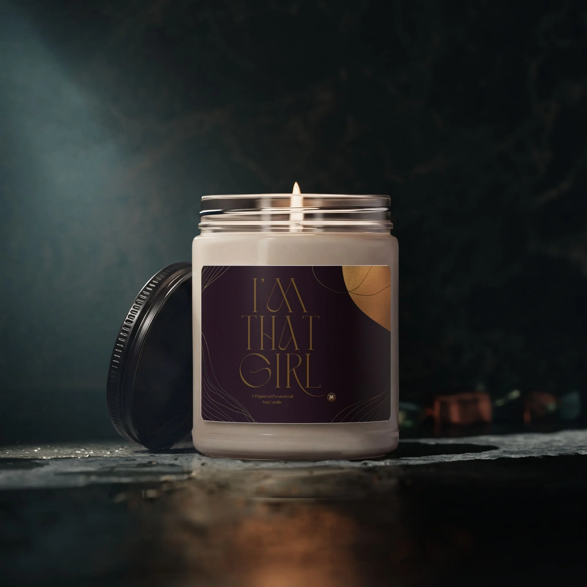 Light this 9oz soy candle and sink into a quiet, confident evening with the calm scent of Peppered Passionfruit in the air.... The glass jar and deep, artful label bring a modern, boudoir-meets-library vibe to your shelf. The clean-burning soy wax and cotton wick deliver a long, even glow (50–60 hours) while the reusable glass vessel becomes a little keepsake once the last flicker fades. Subtle, sophisticated, and thoughtfully made in the USA, this candle is designed to scent a room without overpowering it and to sit comfortably in rituals: an evening of journaling, a bath, or a low-light dinner with close friends.