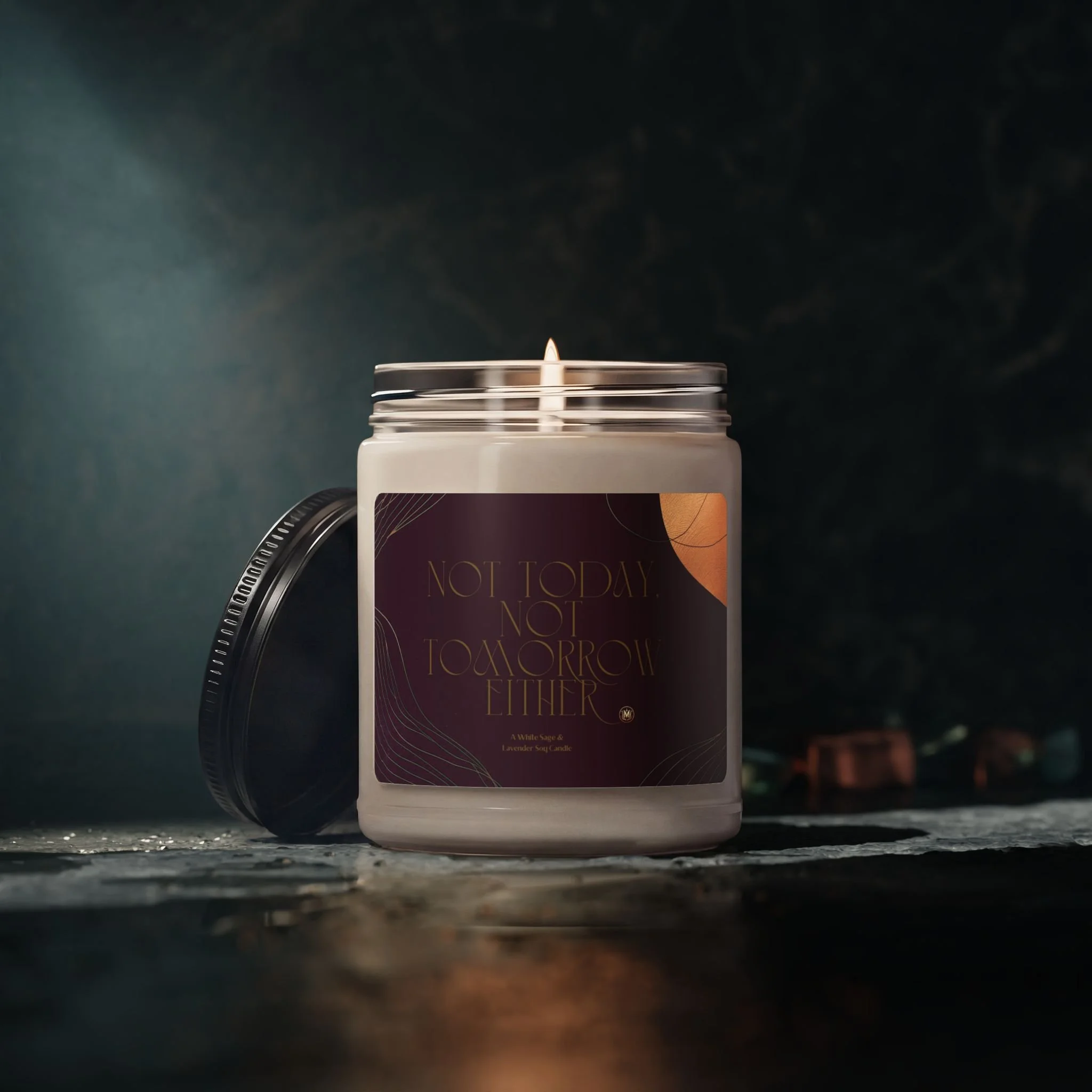 A hand-poured soy candle that brings calm, warmth, and atmosphere to quiet evenings and small rituals. Housed in a reusable glass jar with a sleek black lid and a richly designed label, this 9oz candle burns cleanly for up to 60 hours. The cotton wick and 100% natural soy wax blend deliver a steady, soot-free flame that fills rooms without artificial additives. Thoughtful details like essential-oil-infused fragrance options, ASTM compliance, and a glossy permanent label make this candle feel considered and lasting. After the last glow, the jar cleans up easily to become a small vase, makeup brush holder, or desktop catchall.